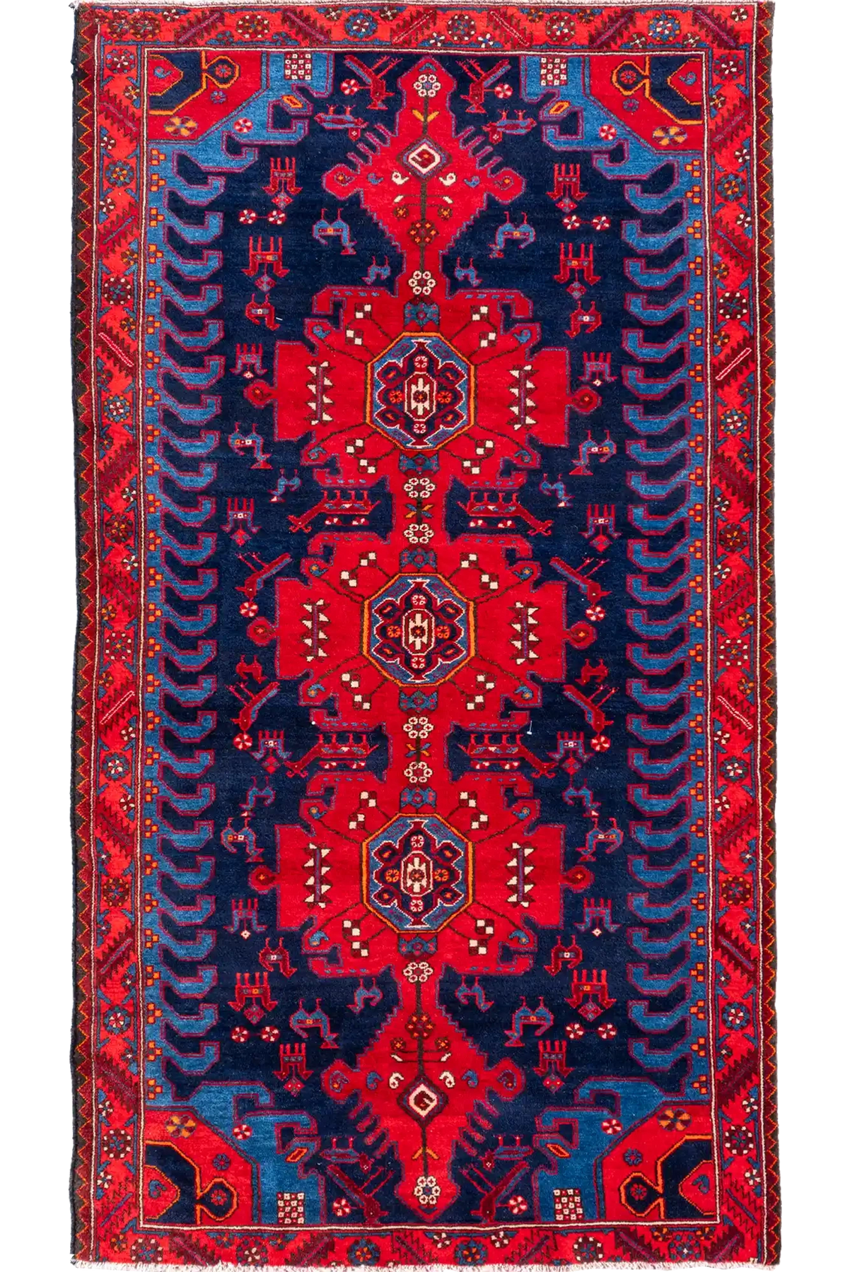 Nahavand rugs have nomadic and geometric patterns and a background full of small motifs. Rusty red and khaki on a dark blue or black background is the main colour structure of the region. This rug is extremely durable and shiny because of the high type of wool the rug weavers use.