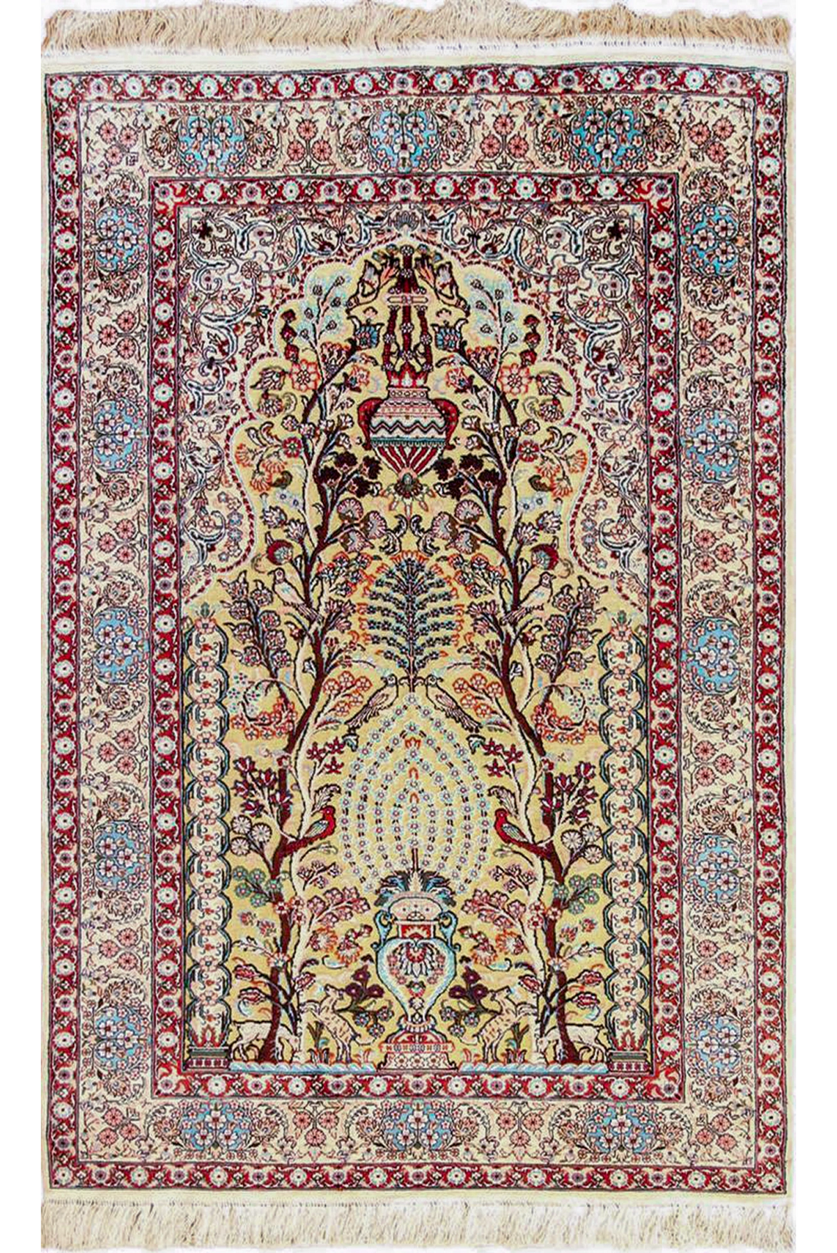 Hereke Prayer Hand Knotted Gold & Silk Rug