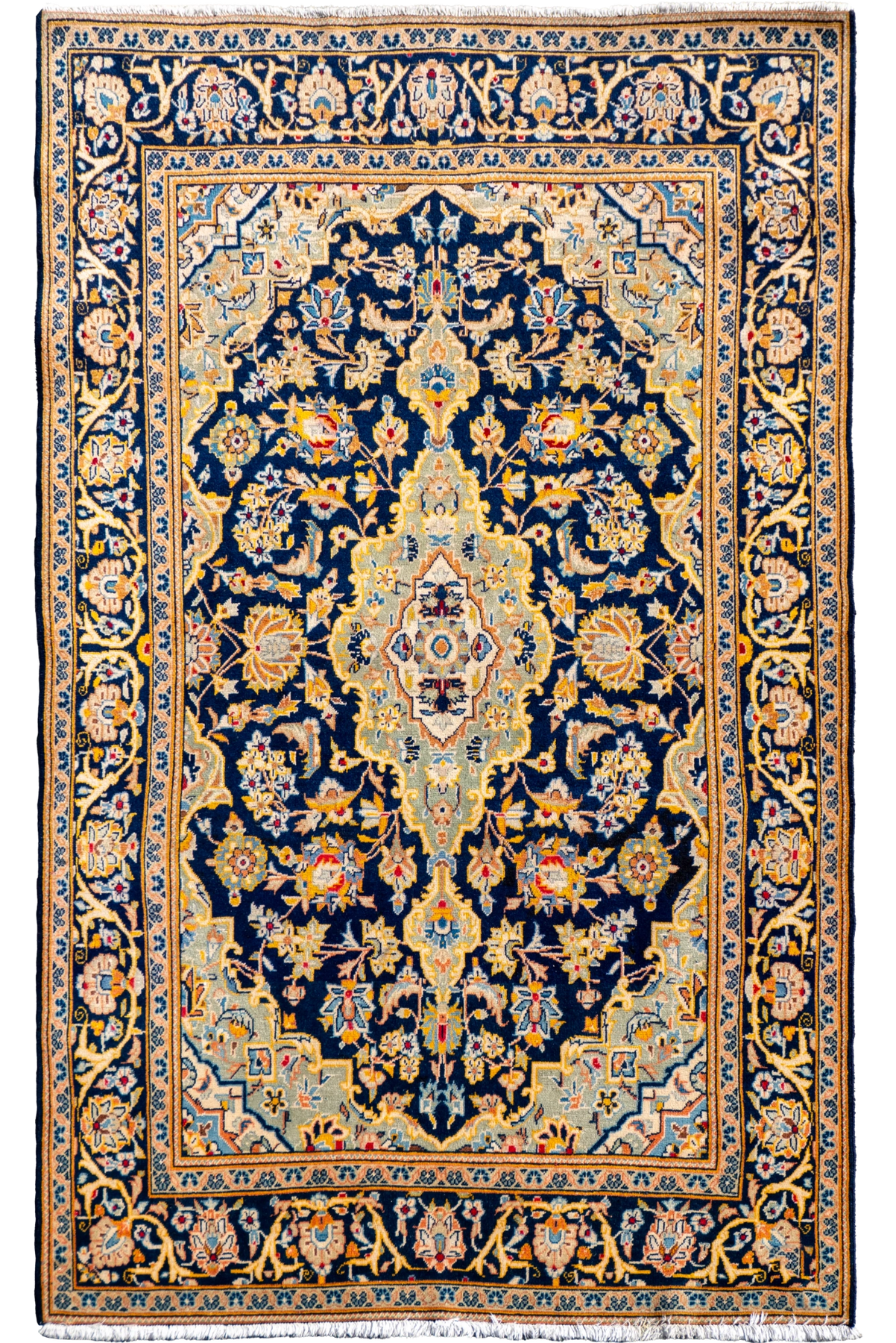 Kashan rugs all have similar patterns, a single medallion in the center and floral motifs. Kashan rugs and carpets are of excellent quality, and are made from good quality wool, often using kurk wool (from the neck of lambs) and are one of the finest looking carpets in the world. Kashan carpets and rugs have the greatest curvature and visibility among those of the cities in the central oriental region. The main colours are ivory, light green and red predominate. Other colours such as soft green and blue are found in newer carpets. Kashans are becoming increasingly difficult to find and acquire. Master Weaves of this quality are highly collectable and in high demand.