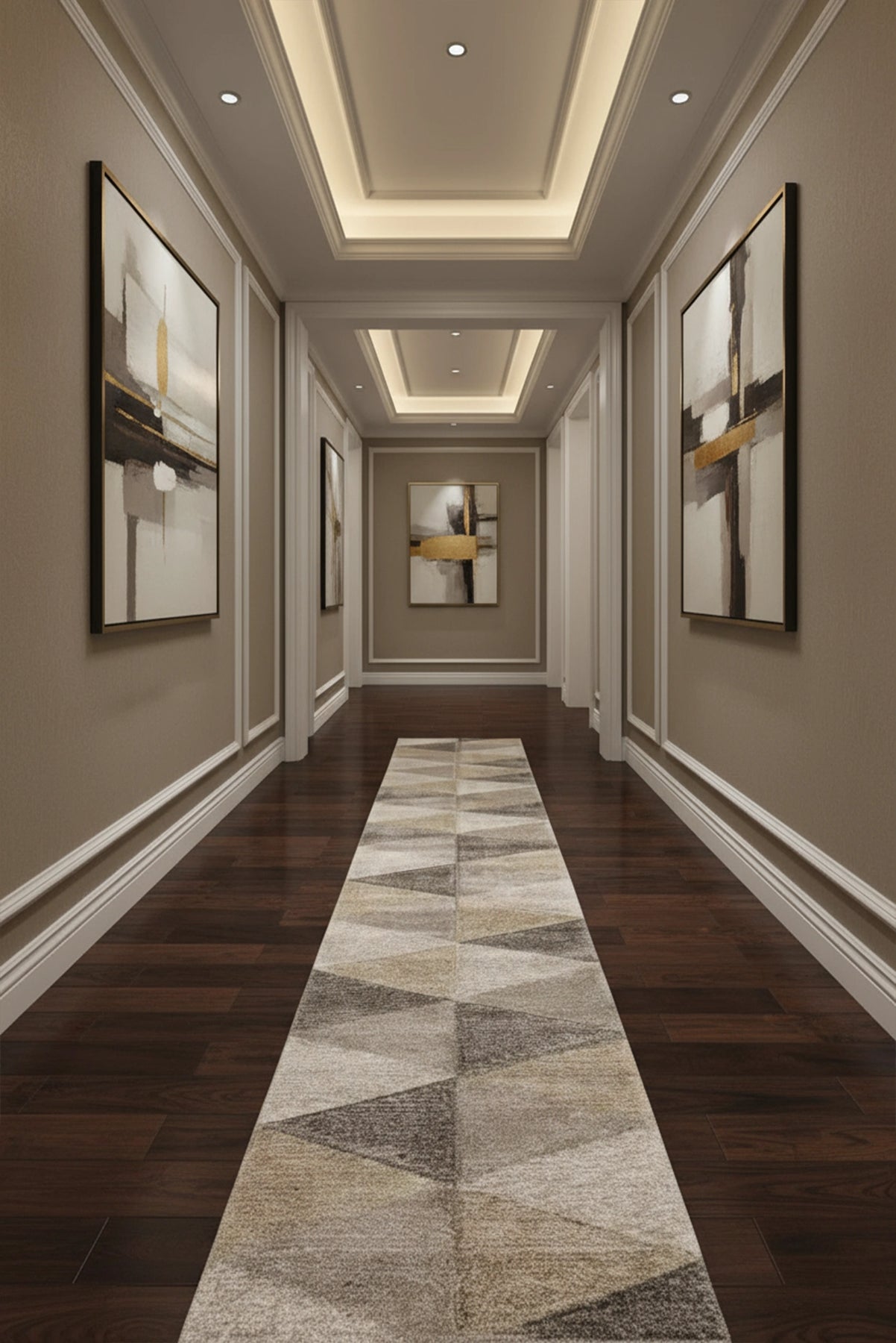 Available in a variety of sizes, from 57 cm x 90 cm to 400 cm x 300 cm, the Parma Collection is designed to fit any space. The color palette includes rich shades of brown, blue, charcoal, and beige, offering versatility to match any décor. Choose from wavey, modern, and geometric styles to enhance your living rooms, bedrooms, or high-traffic areas.
